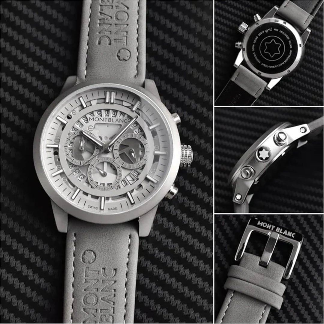A perfect blend of sophistication and functionality, the Montblanc Matte Grey Chronograph Watch is crafted for modern men who value precision and elegance. With its matte finish, working chronograph, and premium detailing, it’s more than a watch – it’s a statement.